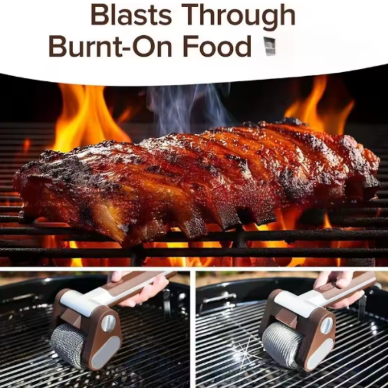 Verander de manier waarop u uw grill reinigt met de elektrische borstelloze rollergrillreiniger. Deze is ontworpen voor maximale efficiëntie en verwijdert zelfs de hardnekkigste vet- en voedselresten, waardoor uw grill vlekkeloos schoon wordt zonder dat u handmatig hoeft te schrobben. Verwijdert snel hardnekkige vlekken en reinigt uw grill in enkele seconden zonder handmatig schrobben.
