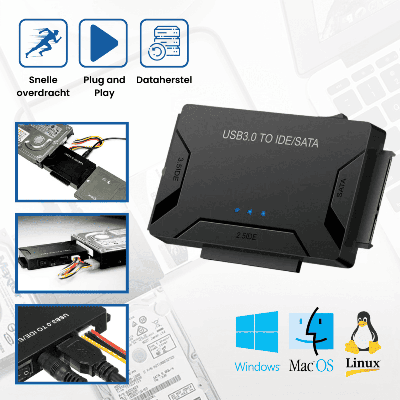 Werkt met alle harde schijven – Ondersteunt zowel SATA als IDE-schijven tot 6TB. Laptops, telefoons, DVD, CD, NAS, etc.